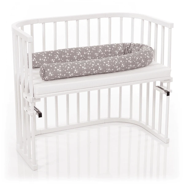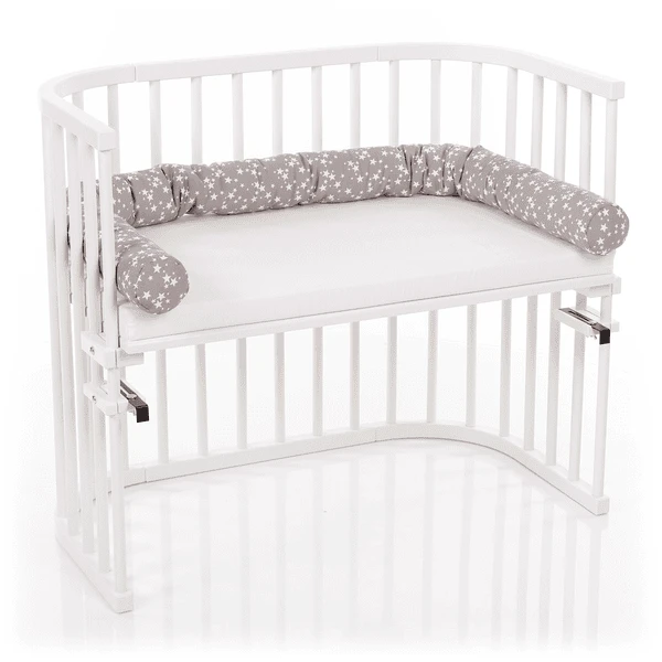 In questo aiuta il paracolpi di babybay: posizionatelo nel lettino attorno al vostro bambino per farlo sentire sicuro durante il sonno. Il paracolpi protegge anche la testa dai lati duri del letto. E, perché no, si può anche usare come para-spifferi o per proteggere dagli angoli.