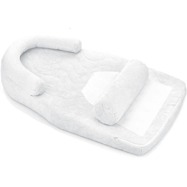 Inoltre, l’effetto del letto Design è più orientato verso i suoi effetti sulla salute. L’area della testa leggermente rialzata, ad esempio, può aiutare a contenere il riflusso. Il trogolo preformato è stato progettato per proteggere la testa del bambino sensibile dalla deformazione. Anche il rotolo di ginocchiera, che si adatta alle dimensioni del bambino e può essere utilizzato se necessario, sembra essere molto utile. Angling le gambe rilassa la parete addominale e può alleviare le coliche e dolori addominali.