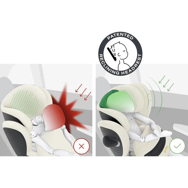 poggiatesta a tripla inclinazione impedisce che la testa del bambino si incliniin avanti durante il sonno