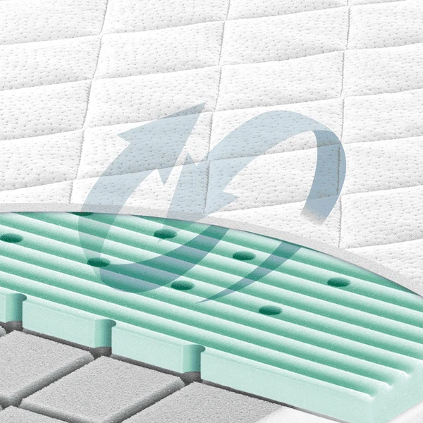 - Il nucleo è costituito da 120 cuscinetti di schiuma che forniscono un supporto ottimale alla colonna vertebrale.