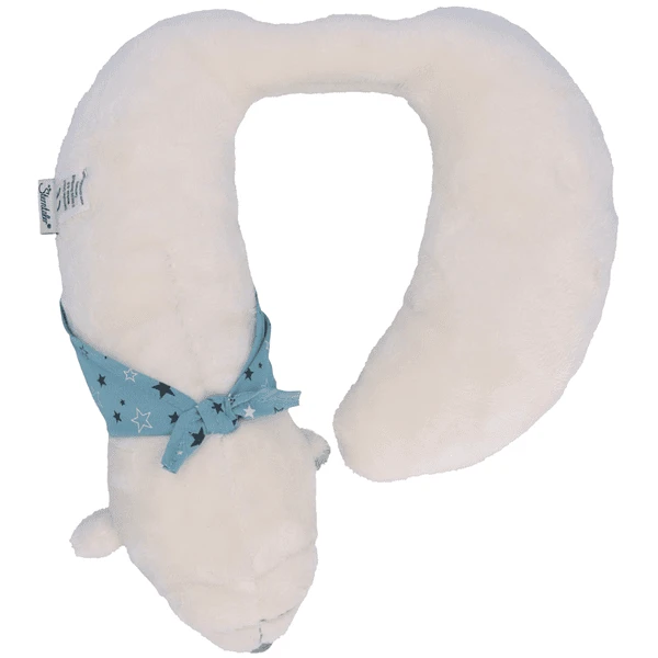 - L’orso polare Elia, grande supporto per il collo dalla forma ergonomica, realizzato in tessuto di pile e poli cotton , offre un sollievo lenitivo per la colonna vertebrale cervicale e la zona delle spalle.