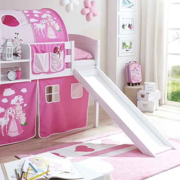 sotto il letto invitano i bambini a riposare e a giocare. La scala inclinata